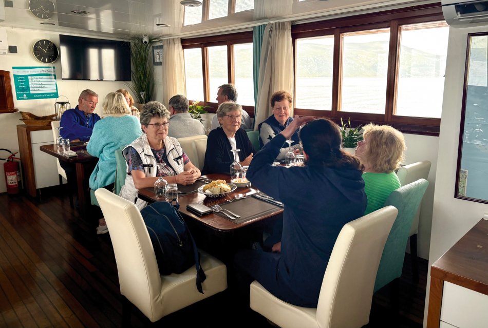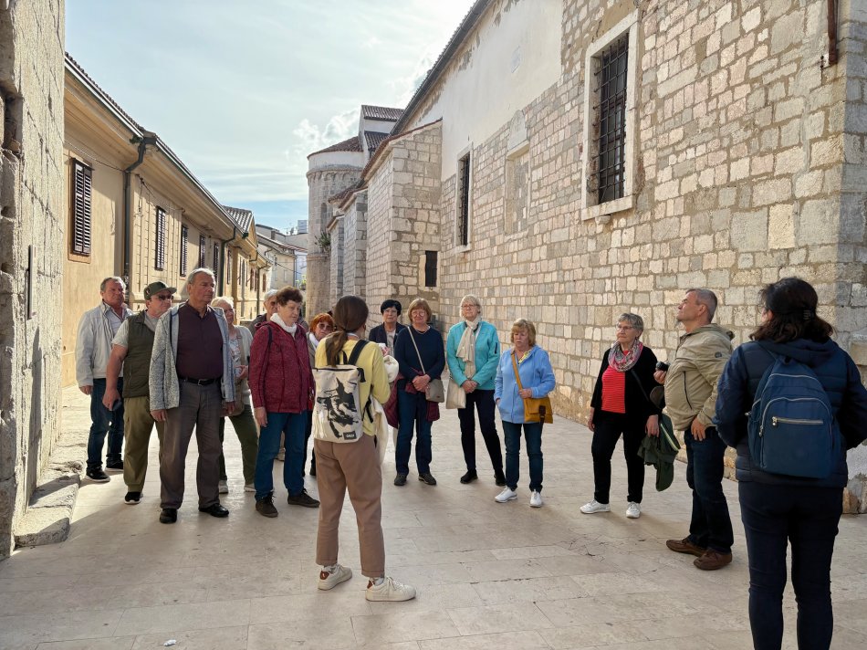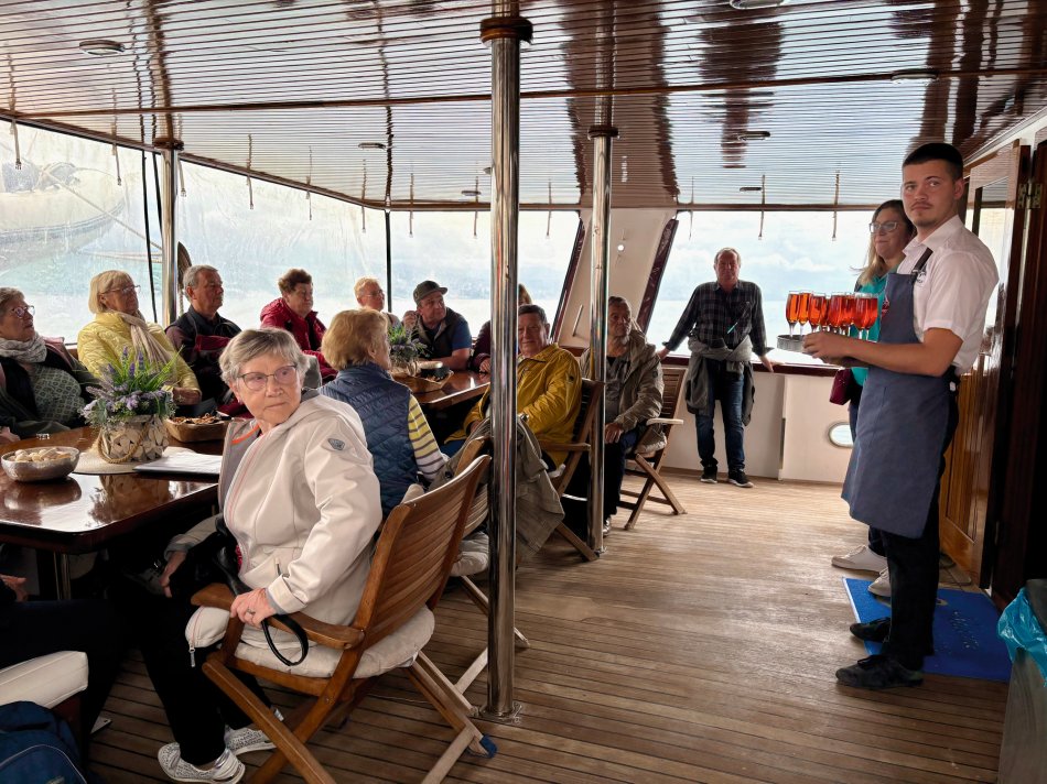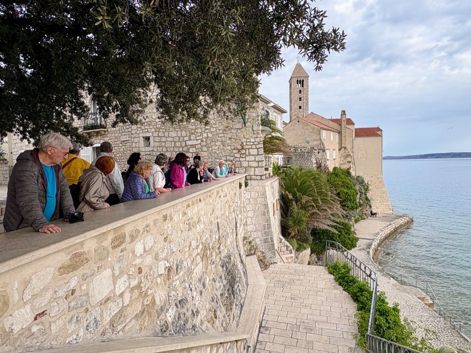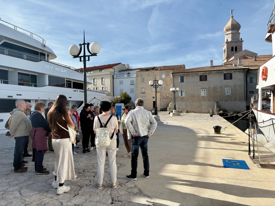 Nach einem hervorragenden Frühstück haben wir gestern unser tolles Hotel Mirjana & Rastoke verlassen und sind durch die üppig grüne Landschaft Richtung Küste gefahren. Um 12:15 Uhr haben wir das hübsche Seebad Opatija erreicht, wo sich unsere Reisegruppe aufgeteilt hat. 15 Gäste haben mit unserem Busfahrer Marco das Hotel Paris in Opatija bezogen und werden in den kommenden Tagen das Istrische Hinterland, das bezaubernde Städtchen Rovinj und die Insel Krk gemeinsam mit Reiseleiterin Nancy erkunden. Die restlichen 20 Gäste sind mit Reiseleitung Nicole gemütlich am Lungomare Richtung Hafen spaziert, wo unser Schiff MS Antonela auf uns wartete. Nach einer herzlichen Begrüßung an Bord, gefolgt vom Kabinenbezug, nahmen wir während des Mittagessens Kurs auf die Insel Krk. Jeder suchte sich anschließend ein gemütliches Plätzchen an Bord und während die Sonne auf uns hinabschien, genossen wir die Überfahrt. Im Hafen von Krk-Stadt angekommen erwartete uns bereits unsere örtliche Reiseleiterin Jasna zum Spaziergang durch die hübsche Altstadt. Hinein ging es durch das alte Stadttor in ein Layrinth aus engen, verwinkelten Gässchen, die gespickt sind mit kleinen Restaurants, Konoben und Geschäften, hübschen Plätzen und der mächtigen Kirche. Nach dem kurzweiligen Spaziergang stand der Rest des Abends zur freien Verfügung. Unsere Gäste bummelten durch die Geschäfte und ergatterten das ein oder andere Souvenir, bevor man zum Abendessen einkehrte. Fangfrischer Fisch, Miesmuscheln, Grillplatten, knackige Salate – köstlich! Später trafen sich alle am Schiff für einen kleinen Absacker. Lustig klang der Abend an Bord aus.