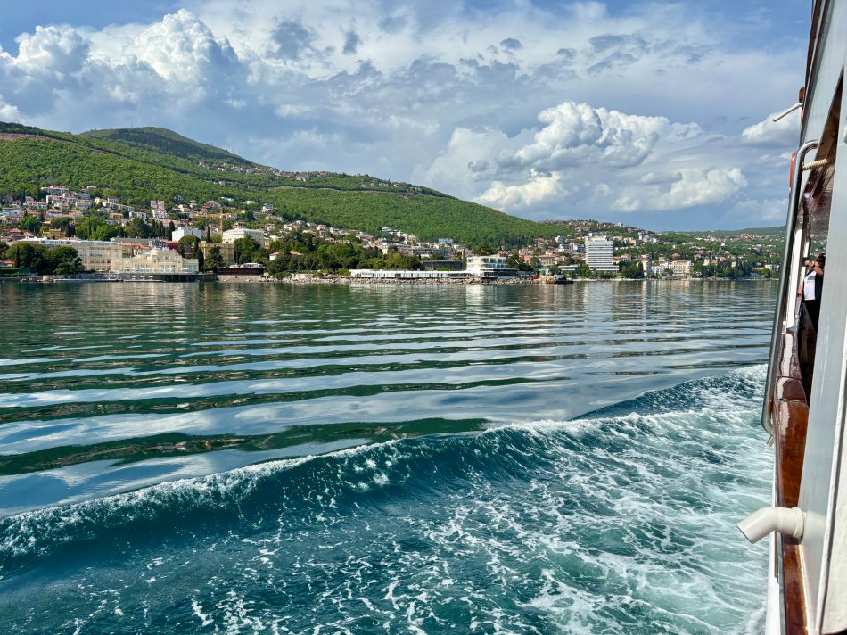 Nach dem Aufwachen empfing uns auch gestern ein herrlicher Morgen voller Sonnenschein und mit blauem Himmel in Mali Losinj. Während des Frühstücks an Bord haben wir die lang gezogene Augustusbucht verlassen uns Kurs Richtung Opatija genommen. Von unseren windgeschützten Lieblingsplätzen an Deck konnten wir herrliche Aussichten auf den Leuchtturm von Kurila und auf das Kap Osor genießen, bevor wir die Küste der Insel Cres passierten. Vorbei am Küstenort Martinscica und dem Festungsort Lubenice, der auf 380 m über dem Meer thront, fuhren wir an herrlichen Badebuchten vorbei, bevor langsam die Opatija Riviera in Sicht kam. Es gibt einiges zu sehen auf der Strecke und die Fotoapparate wurden häufig gezückt. Gegen 15:30 Uhr haben wir im charmanten Seebad Opatija fest gemacht. Anschließend erwartete uns Reiseleiterin Nancy zum kurzweiligen Stadtspaziergang. Der Park Angiolina erblühte in bunten Frühlingsfarben und üppigem Grün. Vorbei an der Kirche des Heiligen Jakob, dem Mädchen mit der Möwe, dem traditionellen Bakajol und natürlich über den kroatischen Walk of Fame – Nancy hat uns ihre Stadt auf interessante und humorvolle Art gezeigt. In der sich anschließenden Freizeit wurde durch die Geschäfte gebummelt, in Restaurants eingekehrt und am Meer entlang des Lungomares spaziert. Zurück an Bord erklangen dann noch mal die Gläser auf einen herrlichen Abschluss unserer kleinen Kreuzfahrt.