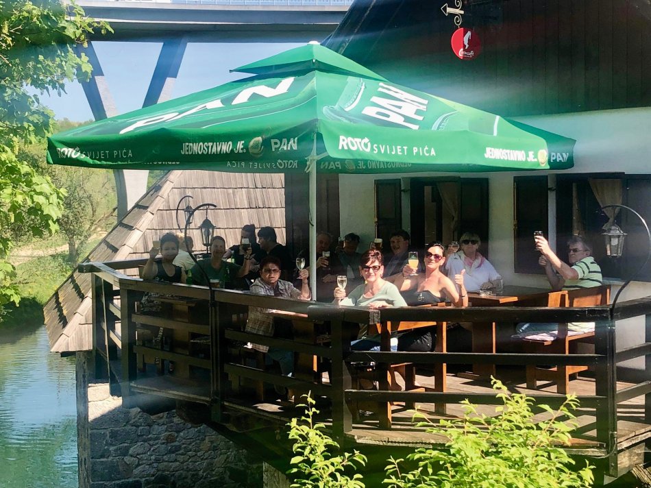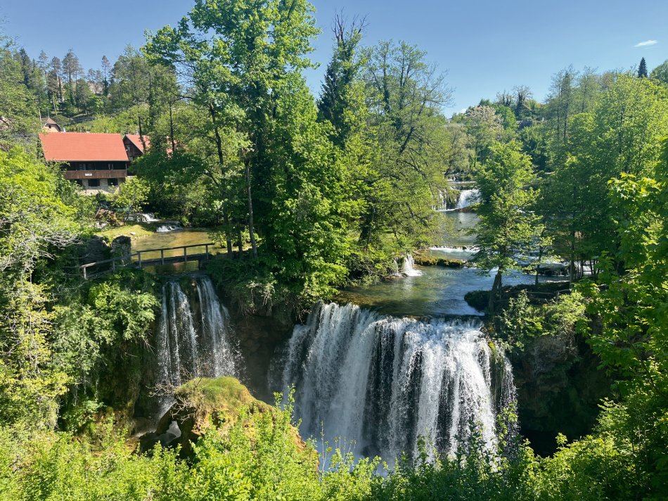So ein überragendes Frühstück, wie hier im Hotel Mirjana & Rastoke, haben wir lange nicht erlebt! Gut gestärkt sind wir heute um kurz nach 9:00 Uhr gestartet und waren 35 Minuten später bereits am Eingang 1 des Nationalparks Plitvicer Seen., wo uns unsere örtlicher Reiseleiterin Irena schon erwartet hat. Wir haben uns alle gemeinsam für eine mittlere Tour entschieden, die ca. 4 Stunden dauert. Auf einer Streckenlänge von 4 km haben wir so die Highlights des Parks erkundet: Von der Aussichtsplattform genießt man einen ersten Blick hinunter auf das türkisfarbene, glitzernde Wasser, umrahmt von üppig grüner Vegetation und die großen Wasserfälle, die sich 78 m in die Tiefe stürzen. Auf urigen Pfaden, die sich zum Teil mitten durch das glasklare Wasser schlängeln, spazierten wir gemütlich entlang der Unteren Seen bis zum Kozjak, dem größten See des Nationalparks, den wir mit dem Elektroboot überquerten. Anschließend gönnten wir uns eine Pause und genossen kühle Getränke mit herrlichem Blick inmitten der idyllischen Naturlandschaft. Der Fahrt mit dem Panoramafahrzeug folgte ein letzter Spaziergang über die östliche Seite des Canyons, zu unserem Startpunkt. Unser Fazit: Einfach Atemberaubend und unfassbar schön! Ein Naturerlebnis, das seinesgleichen sucht! Wir kommen im nächsten Jahr definitiv wieder und zwar genau zu dieser Jahreszeit! Wir hatten sommerliche Temperaturen (25 Grad) und es war noch nicht so überfüllt wie in der Hauptsaison! Alles richtig gemacht! Auf unserem Weg zurück zum Hotel haben wir in Rastoke noch einen kleinen Stopp eingelegt - ein märchenhaftes Mühlendorf, umgeben von Seen, Stromschnellen, Wasserfällen, mit urigen Gebäuden und herrlichen, kleinen Cafés die zum Verweilen einladen. Ein traumhafter Tag, der beim Abendessen im Hotel seinen Abschluss gefunden hat.