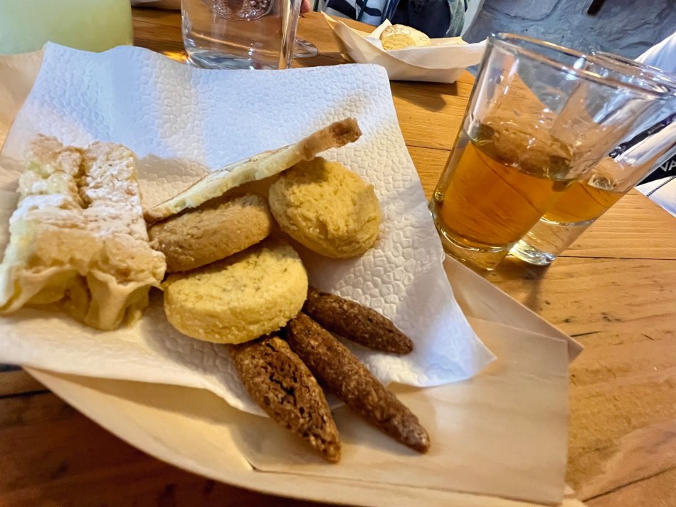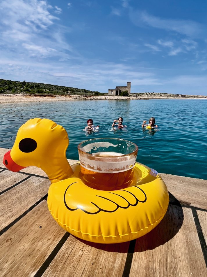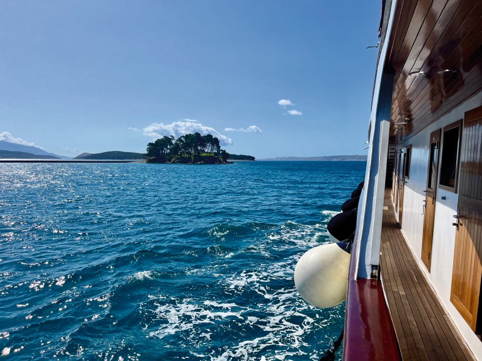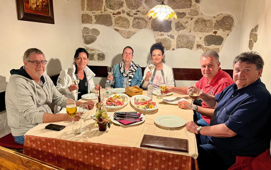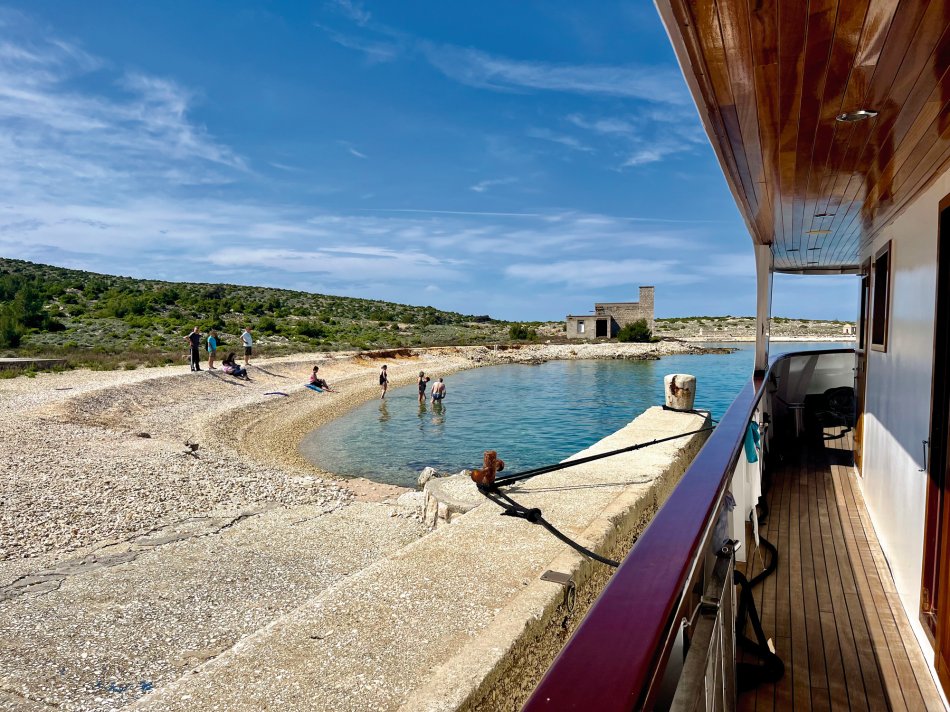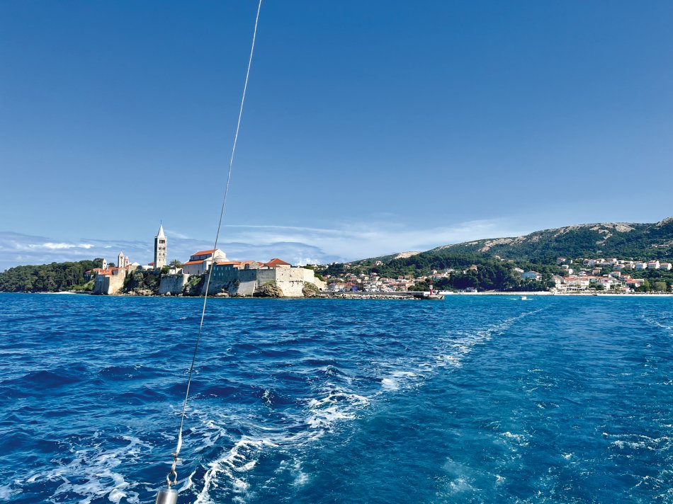 Während Krk langsam erwacht ist, wurde an Bord schon ein super Frühstück vorbereitet. Während der morgendlichen Stärkung haben wir bei herrlichem Sonnenschein Kurs in Richtung Rab genommen. Unterwegs haben wir einen Zwischenstopp auf der Insel Grgur eingelegt. Einst Gefängnisinsel für Frauen zu Titos Zeiten, ist die 6 km² große Insel heute ein Lost Place mit den Überresten des Straflagers. Verlassenen Gebäude, die sich die Natur schnell wieder zurück geholt hat, umgeben von grüner Vegetation, einsamen Stränden und glasklarem Wasser. Einzige Bewohner des Inselchen ist Dammwild, was durch die Touristen, die die Insel im Sommer häufig für einen Besuch ansteuern, sehr zahm sind. Natürlich haben wir ein bisschen was zu Naschen für die freundlichen Vierbeiner mit von Bord genommen. Nach einem individuellen Spaziergang hat sich ein Teil der Gruppe tatsächlich in die türkisfarbene, aber doch noch recht frische Adria gestürzt, was natürlich gebührend belohnt wurde! So erklang aus dem Wasser heraus schon wieder unser "Zivjeli!" und die Gläser erklangen. Zum Mittagessen ging es weiter Richtung Rab, wo wir um 15:00 Uhr schon von unserer Reiseleiterin Natali empfangen wurden, die uns auf einen Streifzug durch die Stadt der Türme begleitet hat. Dem folgte die Verkostung der traditionellen Raber Torte mit Schauvorführung in einem urigen Café. Anschließend ging jeder seiner eigenen Wege. Ein Regenguss zwang uns zur Einkehr in ein Lokal - "Zivjeli!" - Das können unsere Gäste inzwischen sehr gut. Der Abend klang in der gemütlichen Konoba Rab bei fangfrischem Fisch köstlich aus.