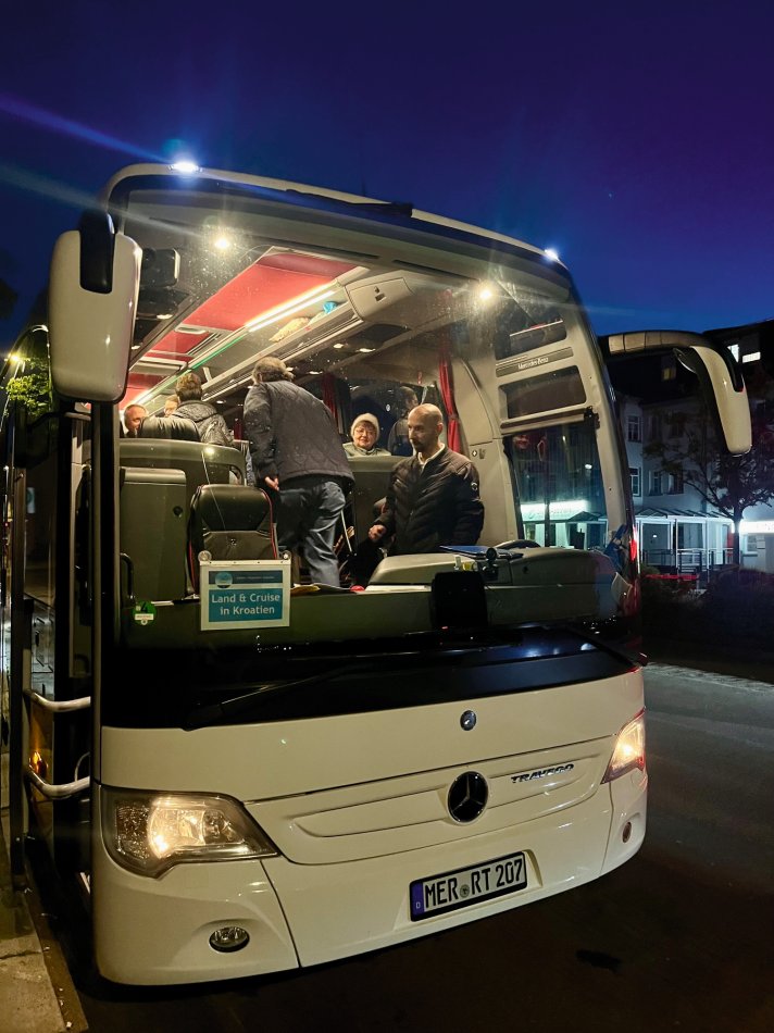 Zeitiges Aufstehen war angesagt, denn um 5 Uhr ging´s schon ab Halle mit dem Bus los. Begleitet von Kaiserwetter mit strahlendem Sonnenschein und angenehmen, frühlingshaften Temperaturen führte uns unsere Fahrt vorbei an Passau, durch Österreich bis nach Slowenien. Natürlich wurden unsere Gäste rundum betreut, gut unterhalten und hervorragend verköstigt! Die Stimmung war großartig und der Abend klingt nun nach einem opulenten Abendessen entspannt in unserem Zwischenübernachtungshotel aus.