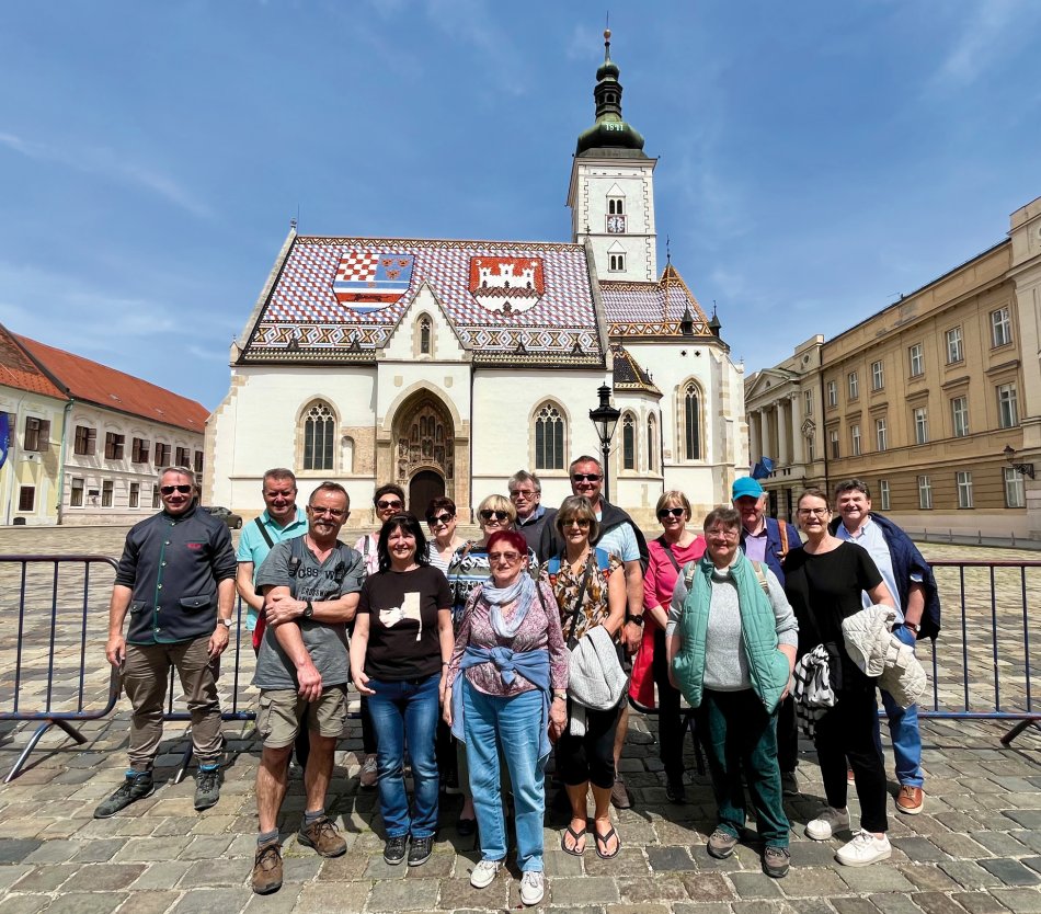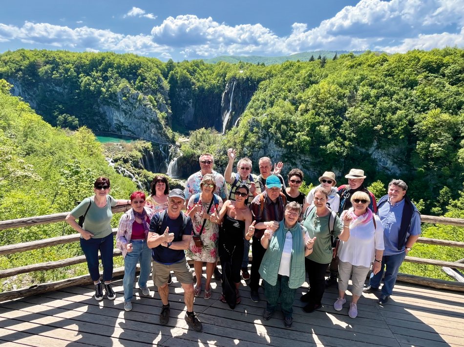 Nach einer erholsamen Nacht und einem guten Frühstück ging es heute um 9 Uhr los nach Zagreb. Kurz vor der Stadt haben wir unseren örtlichen Reiseleiter Bruno eingesammelt - ein wahres Urgestein mit unheimlich viel Wissen, der uns mit kurzweiligen Anekdoten und viel Humor auf einen Streifzug durch "seine" Stadt geführt hat. Dau Hauptstadt Kroatiens hat allerhand zu bieten! Durch den wunderschönen Park, vorbei am Kunstpavillon, ging es auf den Hauptplatz, der die Grenze zwischen der modernen Unterstadt und der historischen Oberstadt bildet. Über den Dolac - den größten und bekanntesten Markt mit einer riesigen Auswahl an frischem Obst, Gemüse, Gebäck und Gourmetspezialitäten - spazierten wir, vorbei am Steinernen Tor und der Kathedrale Maria Himmelfahrt, bis zur berühmten Markuskirche mit dem kunstvoll gefertigten Dach, auf dem das Wappen von Zagreb und das historische Wappen Dalmatiens prangen. Anschließend ging es hoch hinaus - beim Aufstieg auf den Lotrščak-Turm. Nach Erklimmen der 116 Stufen genießt man einen fantastischen Rundumblick über Zagreb. Und was darf bei einem Zagreb-Besuch nicht fehlen? - Eine Fahrt mit der historischen Standseilbahn! In gerade mal einer Minute legt die 128 Jahre alte Seilbahn 66 Höhenmeter zurück und hat uns bequem von der Ober- in die Unterstadt gebracht. Nach der Besichtigungstour standen 2,5 Stunden zur freien Verfügung. Ideal um in eines der zahlreichen Cafés und Restaurants einzukehren und das bunte der Treiben der Stadt zu genießen. Um 16:30 ging es mit dem Bus weiter nach Slunj. Nach 1,5 Stunden Fahrt haben wir unser 4-Sterne Hotel Mirjana bezogen - ein tolles Haus mit großzügigen und modernen Zimmern, einer tollen Terrasse (wo direkt der ein oder andere Gast auf ein Pivo eingekehrt ist) und einem hervorragendem Restaurant. Hier klingt der zweite Reisetag nach dem Abendessen herrlich entspannt aus!