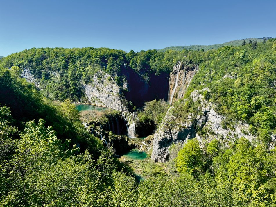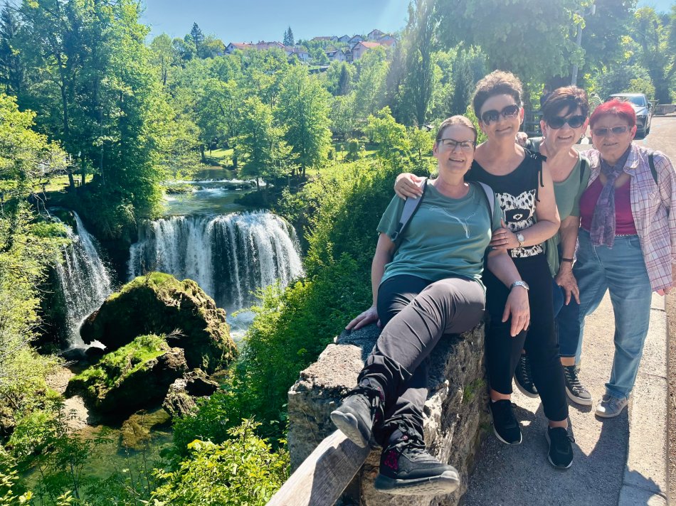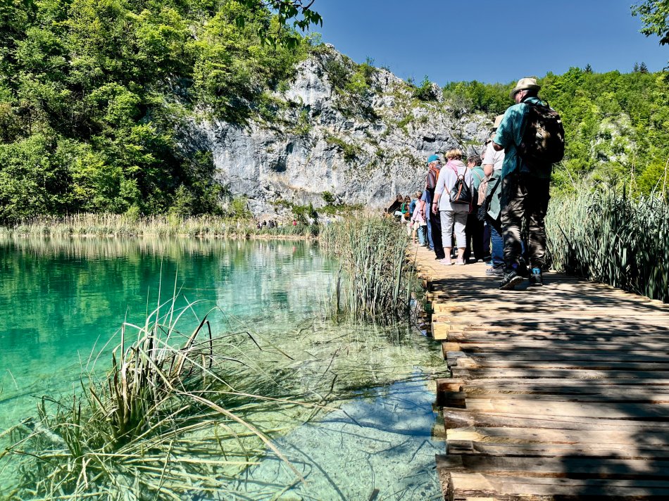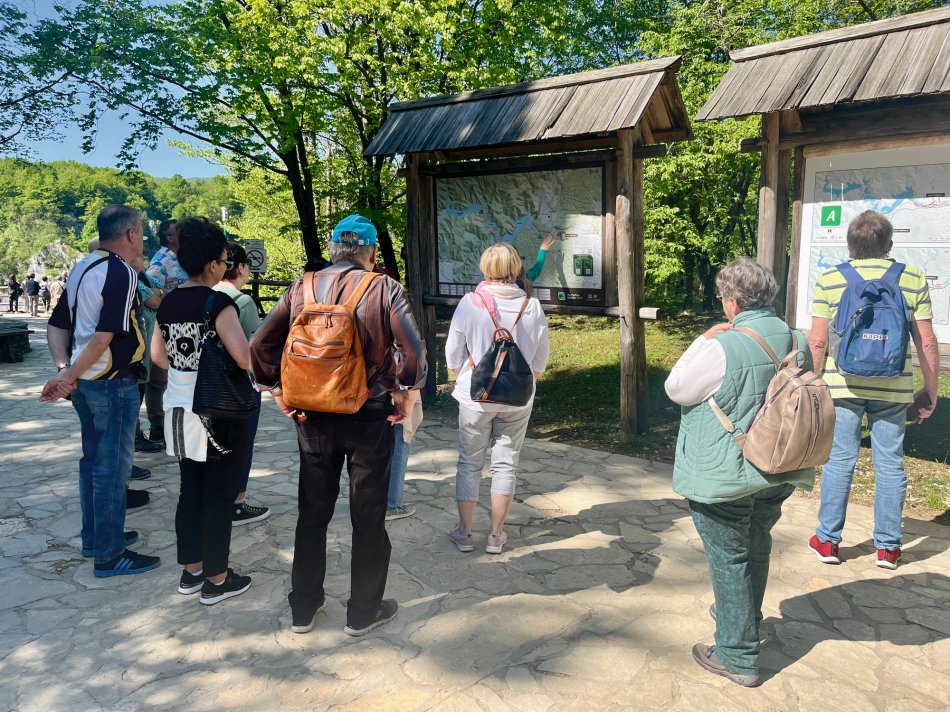 So ein überragendes Frühstück, wie hier im Hotel Mirjana & Rastoke, haben wir lange nicht erlebt! Gut gestärkt sind wir heute um kurz nach 9:00 Uhr gestartet und waren 35 Minuten später bereits am Eingang 1 des Nationalparks Plitvicer Seen., wo uns unsere örtlicher Reiseleiterin Irena schon erwartet hat. Wir haben uns alle gemeinsam für eine mittlere Tour entschieden, die ca. 4 Stunden dauert. Auf einer Streckenlänge von 4 km haben wir so die Highlights des Parks erkundet: Von der Aussichtsplattform genießt man einen ersten Blick hinunter auf das türkisfarbene, glitzernde Wasser, umrahmt von üppig grüner Vegetation und die großen Wasserfälle, die sich 78 m in die Tiefe stürzen. Auf urigen Pfaden, die sich zum Teil mitten durch das glasklare Wasser schlängeln, spazierten wir gemütlich entlang der Unteren Seen bis zum Kozjak, dem größten See des Nationalparks, den wir mit dem Elektroboot überquerten. Anschließend gönnten wir uns eine Pause und genossen kühle Getränke mit herrlichem Blick inmitten der idyllischen Naturlandschaft. Der Fahrt mit dem Panoramafahrzeug folgte ein letzter Spaziergang über die östliche Seite des Canyons, zu unserem Startpunkt. Unser Fazit: Einfach Atemberaubend und unfassbar schön! Ein Naturerlebnis, das seinesgleichen sucht! Wir kommen im nächsten Jahr definitiv wieder und zwar genau zu dieser Jahreszeit! Wir hatten sommerliche Temperaturen (25 Grad) und es war noch nicht so überfüllt wie in der Hauptsaison! Alles richtig gemacht! Auf unserem Weg zurück zum Hotel haben wir in Rastoke noch einen kleinen Stopp eingelegt - ein märchenhaftes Mühlendorf, umgeben von Seen, Stromschnellen, Wasserfällen, mit urigen Gebäuden und herrlichen, kleinen Cafés die zum Verweilen einladen. Ein traumhafter Tag, der beim Abendessen im Hotel seinen Abschluss gefunden hat.