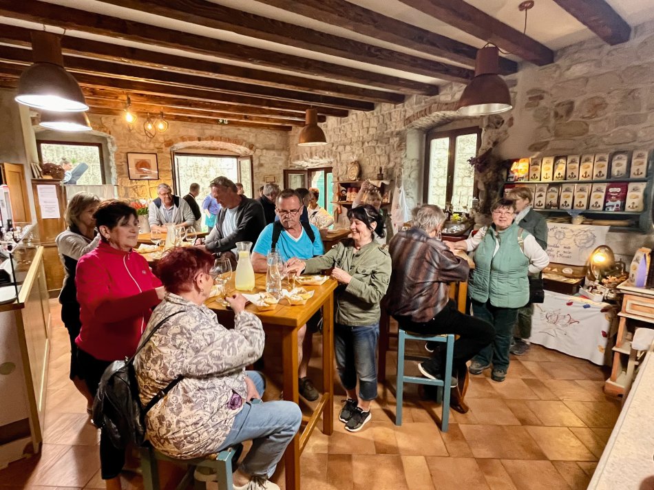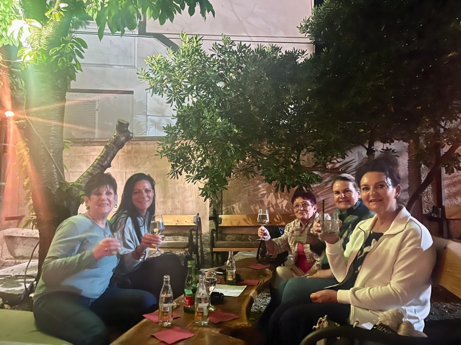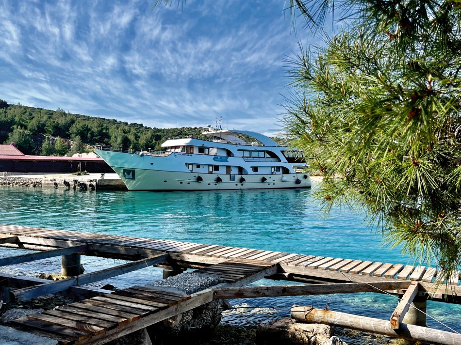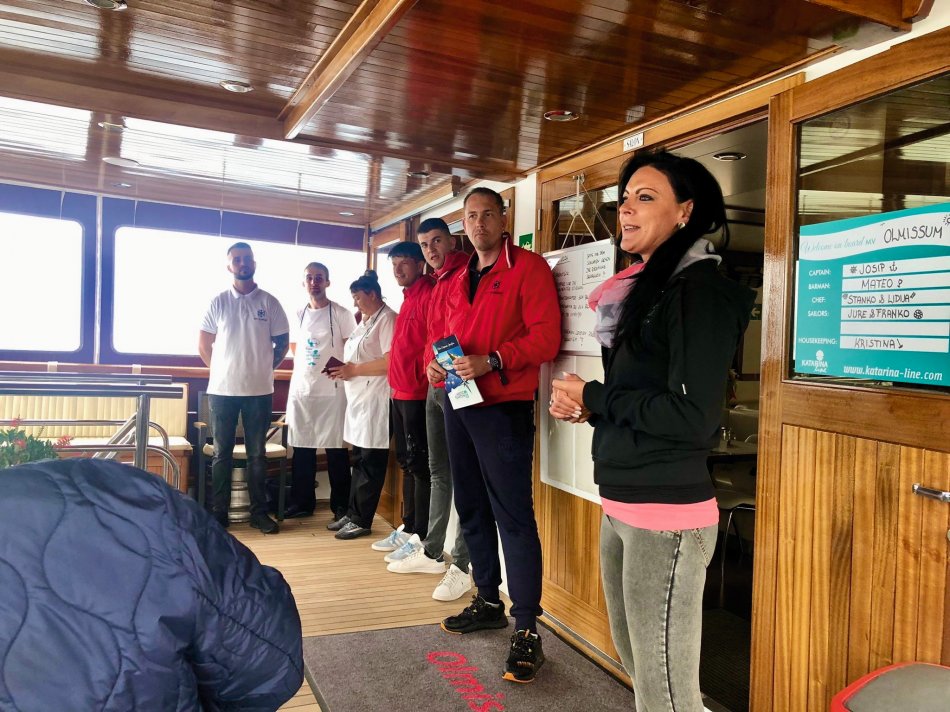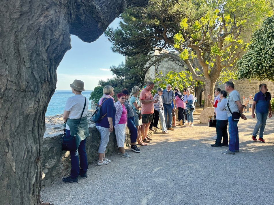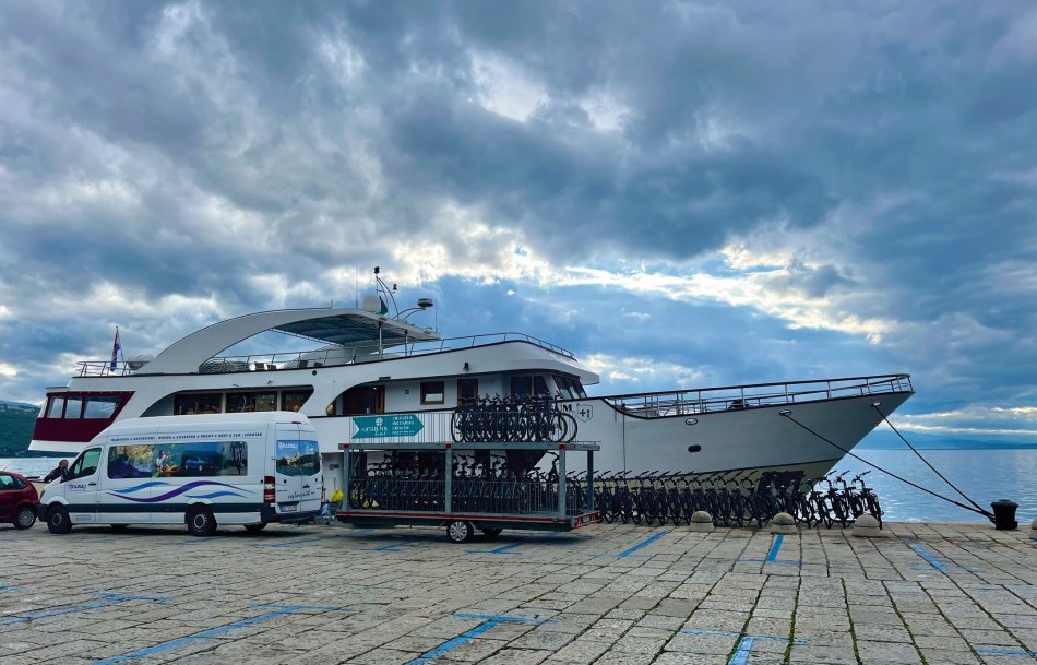 Wir haben das Hotel Mirjana & Rastoke nach einem erneut vorzüglichen Frühstück um 9:00 Uhr verlassen und die 170 km bis zum nach Opatija gemütlich zurück gelegt. Unser Bus parkte am Busbahnhof Slatina, das Gepäck wurde selbstverständlich zum Schiff transferiert und wir sind mit den Gästen entlang des Lungomare, durch den Stadtpark bis zum Hafen spaziert. Herrliches Wetter und der Blick auf die in der Sonne glitzernde Adria und dann lag sie auf einmal vor uns, MS Olmissum, unser komfortables Zuhause für die nächsten Tage. Ein tolles Schiff mit 35 m Länge, 17 Kabinen, einem lichtdurchfluteten Salon mit angrenzenden Loungebereich und einem großzügigem Sonnendeck mit bequemen Liegen und Sitzgruppen. Nach einer herzlichen Begrüßung und einem ersten Mittagessen nahmen wir direkt Kurs auf die Insel und gleichnamige Stadt Krk, die wir nach unserer Ankunft um 16:30 Uhr mit Reiseleiterin Slavica bei einem gemütlichen Spaziergang erkundet haben. Durch das mittelalterliche Stadttor gelangten wir ins 2.000 Jahre alte Stadtzentrum mit engen Gässchen, gespickt mit kleinen Boutiquen und Souvenirläden, der Kathedrale und der alten Festung. Unser Rundgang endete an der lebhaften Uferpromenade, wo sich unsere Wege trennten. Der Rest des Tages stand zur freien Verfügung. Nach einem erfrischenden Bevanda mit Blick auf unser Schiff, einer großen Portion Miesmuscheln Buzara und dem Besuch im Serect Garden Volsonis haben wir um Mitternacht sogar noch eine Bar mit kroatischer Live-Musik direkt am Hafen gefunden. Hier haben wir uns unter die Einheimischen gemischt und die herzliche Atmosphäre genossen. Um 01:30 Uhr hieß es dann "laku noc" - Gute Nacht.