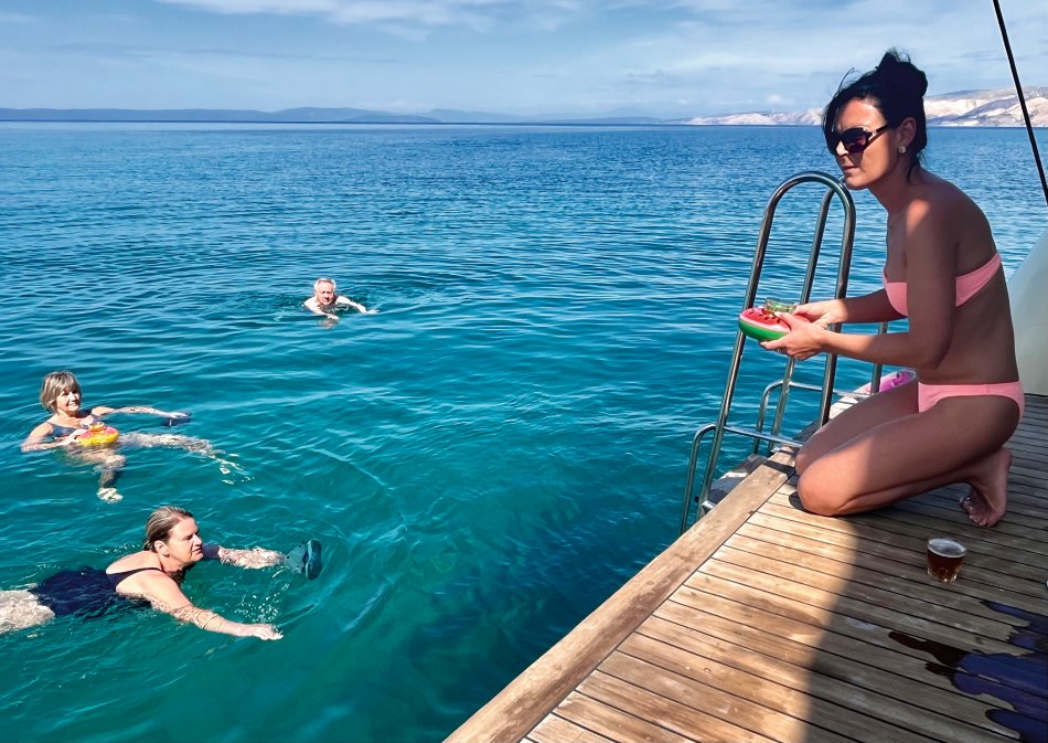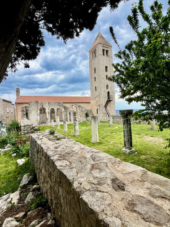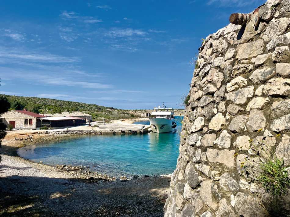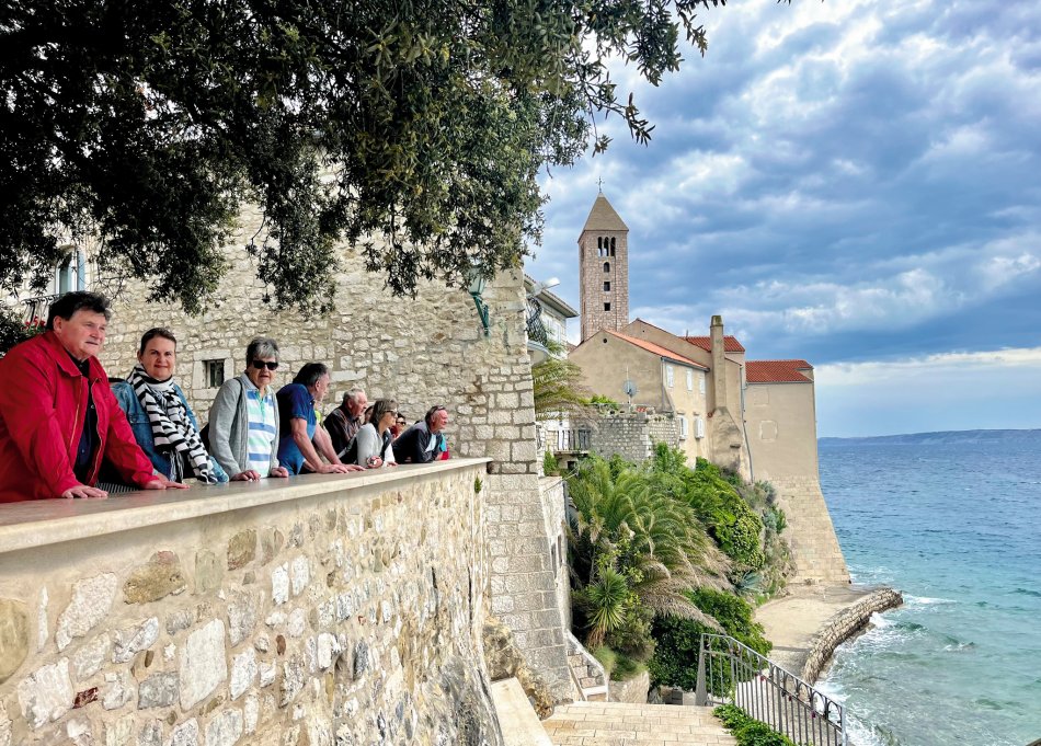Während Krk langsam erwacht ist, wurde an Bord schon ein super Frühstück vorbereitet. Während der morgendlichen Stärkung haben wir bei herrlichem Sonnenschein Kurs in Richtung Rab genommen. Unterwegs haben wir einen Zwischenstopp auf der Insel Grgur eingelegt. Einst Gefängnisinsel für Frauen zu Titos Zeiten, ist die 6 km² große Insel heute ein Lost Place mit den Überresten des Straflagers. Verlassenen Gebäude, die sich die Natur schnell wieder zurück geholt hat, umgeben von grüner Vegetation, einsamen Stränden und glasklarem Wasser. Einzige Bewohner des Inselchen ist Dammwild, was durch die Touristen, die die Insel im Sommer häufig für einen Besuch ansteuern, sehr zahm sind. Natürlich haben wir ein bisschen was zu Naschen für die freundlichen Vierbeiner mit von Bord genommen. Nach einem individuellen Spaziergang hat sich ein Teil der Gruppe tatsächlich in die türkisfarbene, aber doch noch recht frische Adria gestürzt, was natürlich gebührend belohnt wurde! So erklang aus dem Wasser heraus schon wieder unser "Zivjeli!" und die Gläser erklangen. Zum Mittagessen ging es weiter Richtung Rab, wo wir um 15:00 Uhr schon von unserer Reiseleiterin Natali empfangen wurden, die uns auf einen Streifzug durch die Stadt der Türme begleitet hat. Dem folgte die Verkostung der traditionellen Raber Torte mit Schauvorführung in einem urigen Café. Anschließend ging jeder seiner eigenen Wege. Ein Regenguss zwang uns zur Einkehr in ein Lokal - "Zivjeli!" - Das können unsere Gäste inzwischen sehr gut. Der Abend klang in der gemütlichen Konoba Rab bei fangfrischem Fisch köstlich aus.