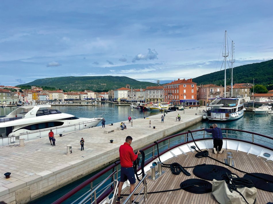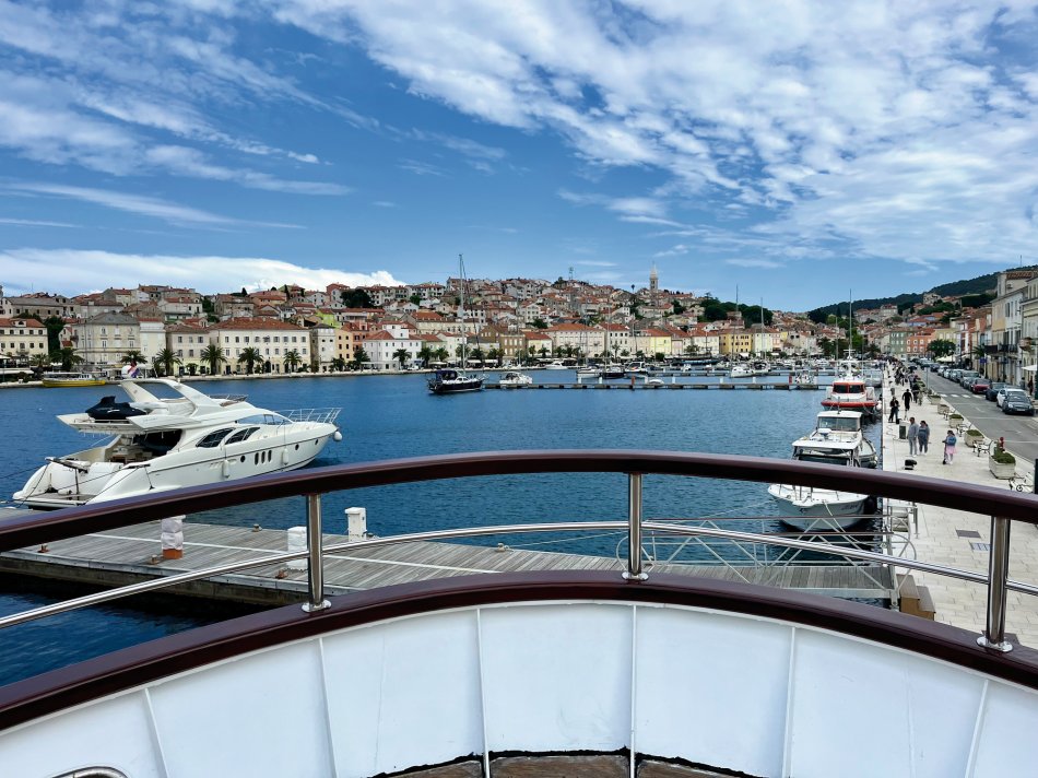 Da die Wetterprognose mit Wind und auch Regen für gestern nicht ganz so rosig aussah, haben wir kurzfristig umdisponiert. Das ist einer der Vorteile bei unseren kleinen Schiffen. Wir sind einfach super flexibel! Deshalb haben wir Mali Losinj gestern früh bereits um 7 Uhr verlassen und uns auf den Weg gen Norden gemacht. Anstatt direkt Kurs auf Opatija zu nehmen, haben wir einen Zwischenstopp in Cres vorbereitet. Ein leichtes Schaukeln während des Frühstücks, aber reichlich Sonnenschein. Jeder hat sich sein Lieblingsplätzchen an Bord gesucht und die Fahrt genossen. Um 10:30 haben wir im beschaulichen Örtchen Cres festgemacht. Hier hatte jeder Zeit für einen individuellen Spaziergang durch die verwinkelten Gassen und entlang der bunten Häuser, die sich rings um das verschlungene Hafenbecken aneinander schmiegen und die neben kleinen Boutiquen, Souvenirläden und Cafés hervorragende Eisdielen beheimaten. Nach anderthalb Stunden ging es pünktlich zum Mittagessen mit unserer MS Olmissum weiter Richtung Opatija. Während wir die Opatija Riviera passierten, fing es leider doch noch an zu regnen. Unsere Gäste ließen sich davon nicht die Laune verderben und freuten sich auf den Rundgang durch das mondäne Seebad mit wunderschönen Villen, dem großen Park mit dem Bambuswald und der 12 km langen Promenade am Meer, dem Lungomare. Anschließend kehrten einige unserer Gäste in eines des Kaffeehäuser ein, fast wie zu Zeiten der Habsburger. Hervorragende Restaurants und kleine Boutiquen ließen auch für den Abend keine lange Weile aufkommen. Und vor dem Schlafengehen mussten dann ja auch schon wieder die Koffer gepackt werden.....